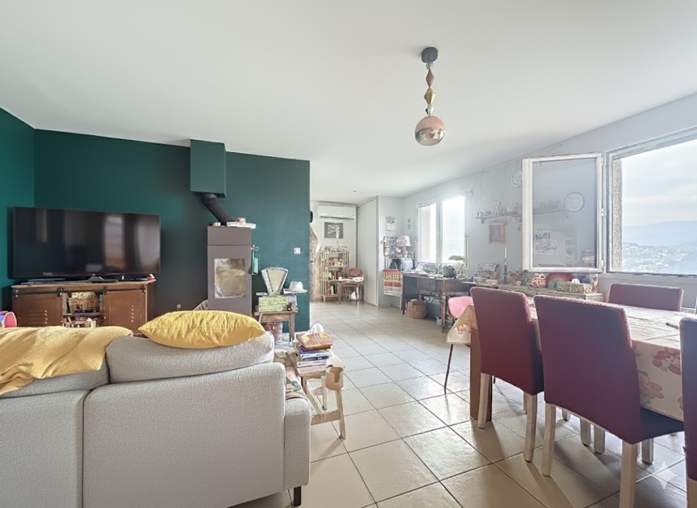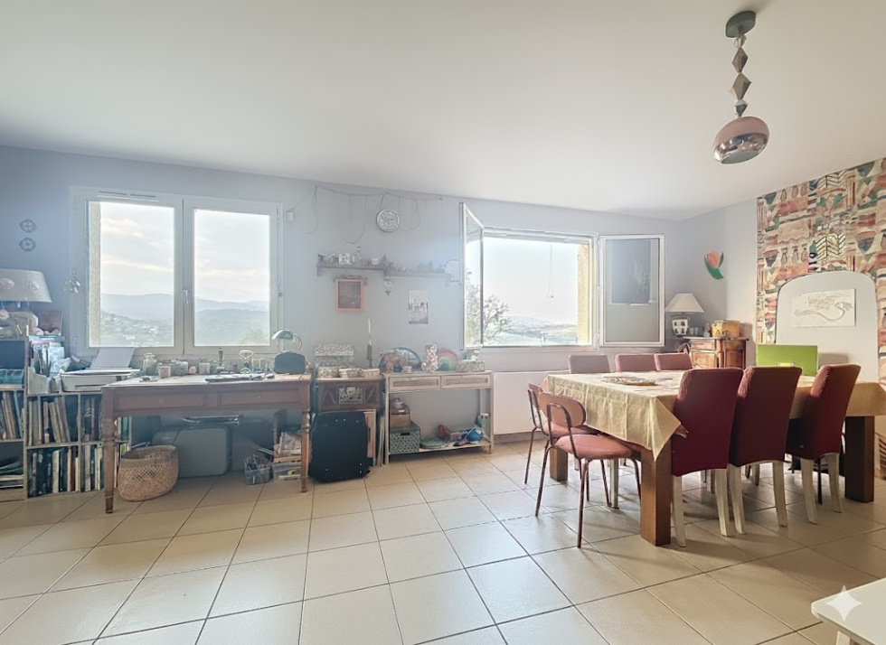 Situé sur les hauteurs du village de COURZIEU à proximité des commerces de La Giraudière, au calme, une belle maison de 3 lots dont 1 T5 en duplex et 1 T2. Le T 5 : Au premier étage, une belle pièce de vie lumineuse avec poêle à bois, une cuisine récente donnant sur un jardin et une grande terrasse couverte de 31 m², un WC. À l’étage, quatre chambres avec placards, une salle d’eau rénovée et un WC séparé. Garage, cave et puits. L’appartement a bénéficié de nombreux travaux : pompe à chaleur réversible, chauffe-eau thermodynamique, isolation de la toiture, VMC, cuisine et salle d’eau refaites, parquet dans les chambres, peintures, panneaux photovoltaïques, moustiquaires et WC suspendus. Le T 2 de 41,7 m² attenant, avec jardin privatif et carport, idéal pour un investissement locatif ou pour accueillir famille et amis. Une belle opportunité à découvrir rapidement. Calme, belle vue dégagée et cadre verdoyant. Visite virtuelle sur demande Pour tous renseignements, contactez votre agence ARLIM au 04.74.01.00.19 ou 06x81x39x45x85 Votre agence ARLIM, c'est une équipe de 5 personnes à votre service avec Adeline THOINET, Jérémy PUPIER, Lionel BRESSAN, Camille THIBAUD et Cyndie MARCHAND. Les informations sur les risques auxquels ce bien est exposé sont disponibles sur le site Géorisques : www.georisques.gouv.fr