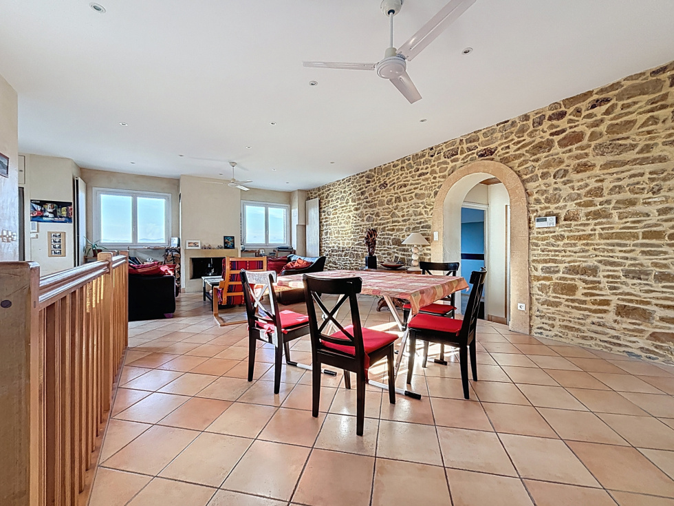 Située sur la commune recherchée de Saint-Germain-Nuelles, cette belle propriété en pierres dorées typiques du Beaujolais séduit par son cachet, ses volumes et son environnement préservé. Accès rapide à l’A89 gratuite et proximité des gares de Lozanne et de L’Arbresle, permettant de rejoindre Lyon facilement. La maison développe plus de 200 m² habitables sur une parcelle piscinable de 1 123 m², avec vue dégagée et protégée (aucune construction future autorisée). Composition : Étage : grande pièce de vie de +50 m² avec cuisine ouverte, 4 chambres, salle de bains, salle d’eau, WC, espace rangement. Rez-de-chaussée : vaste pièce de 43 m² (salle TV, bureau, jeux…), salle d’eau, WC, cuisine d’été. Atouts complémentaires : Appartement T2 indépendant de 39 m² (communication possible avec la maison) Atelier / garage de 32 m² Double vitrage PVC, toiture en bon état, isolation partielle des combles Fibre optique, tout-à-l’égout Un bien rare alliant charme, fonctionnalité et potentiel, dans un cadre calme et privilégié. Visite virtuelle disponible sur demande. Pour tous renseignements, contactez votre agence ARLIM au 04 74 01 00 19. Votre agence ARLIM, c'est une équipe de 5 personnes à votre service avec Camille THIBAUD, Jérémy PUPIER, Lionel BRESSAN, Adeline THOINET et Cyndie MARCHAND. Les informations sur les risques auxquels ce bien est exposé sont disponibles sur le site Géorisques : www.georisques.gouv.fr